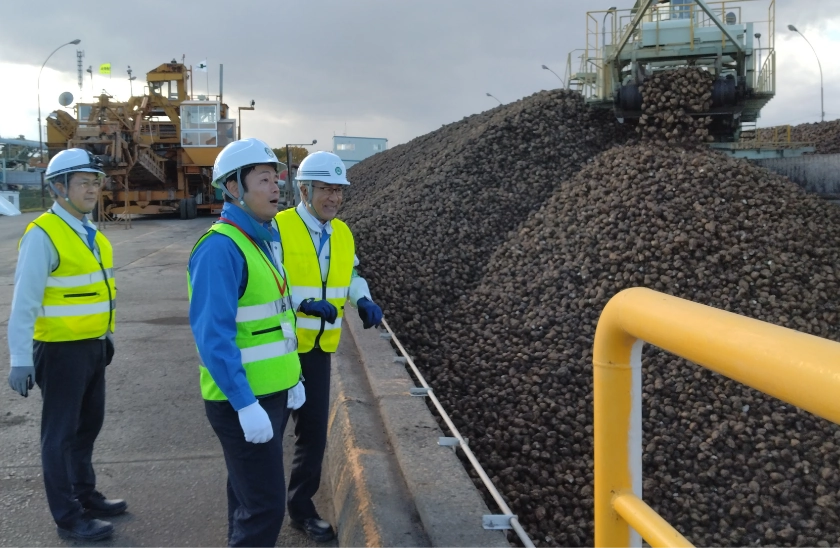 製糖工場を視察し、地元で収穫されたビートの搬入作業を見学いたしました。製糖業はエネルギー・資材価格高騰などにより厳しい経営状況に直面しており、支援の必要性を感じました。
