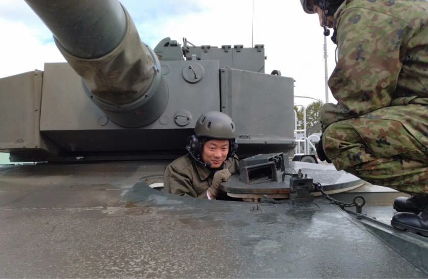 陸上自衛隊にて90式戦車に搭乗しました。厳しさを増す安全保障環境に対応するためには、老朽化した施設の整備、自衛官のなり手不足など多くの課題があることを学びました。